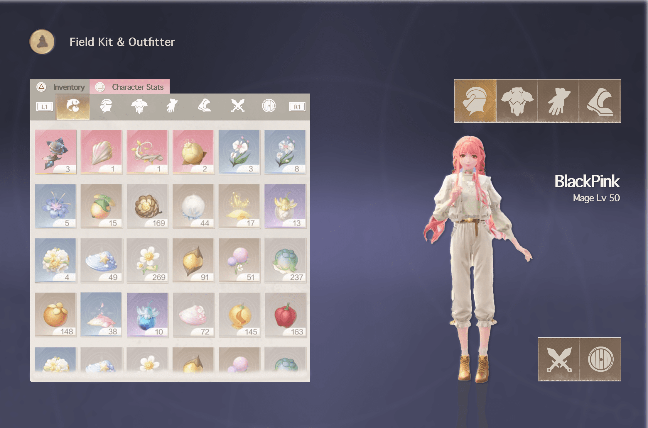 Updated UI has both text cues and icons for each weapon and armor slot.