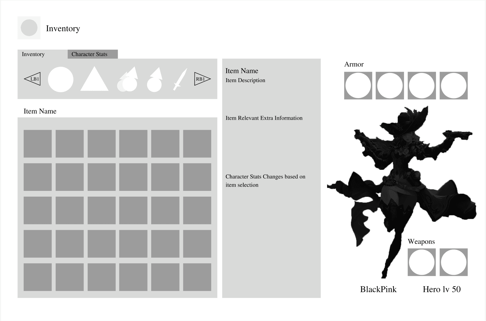 Without clear icons, players did not know which areas within the inventory screen were meant for equipping weapons vs equipment armor.
