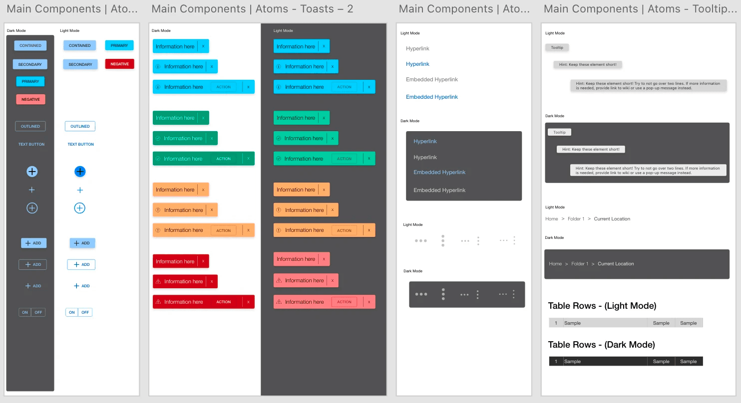 Execution began with a comprehensive audit of existing products to identify duplicated components, inconsistent patterns, and high-frequency UI elements. These insights informed prioritization of foundational tokens and components that would deliver the greatest impact. Design explorations were validated in close partnership with engineering to ensure feasibility and alignment with front-end architecture. Automation workflows were introduced to generate and maintain tokens, reducing manual upkeep and reinforcing consistency across products. Iterative feedback from product teams ensured the system supported real workflows and reduced friction during implementation.